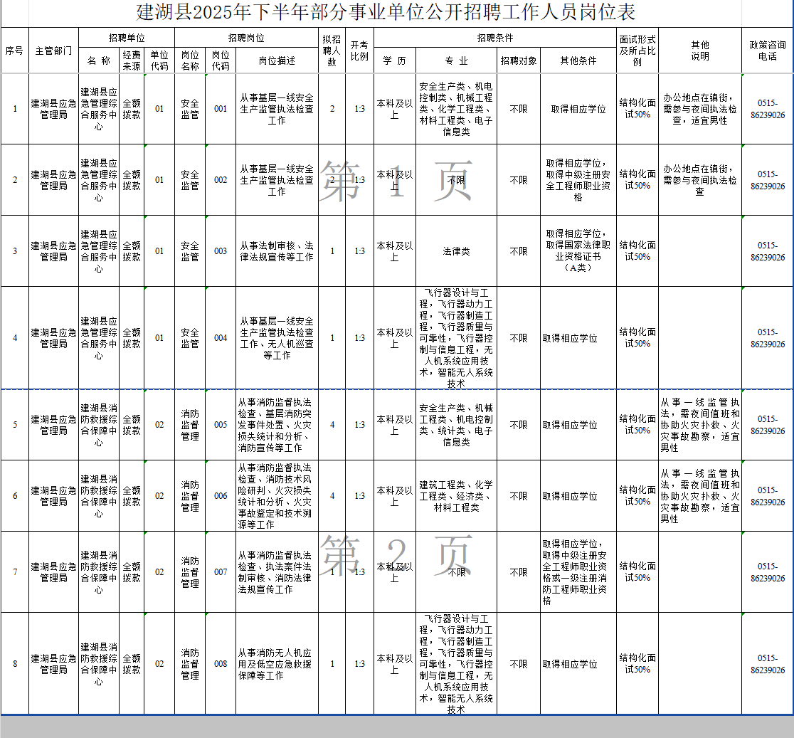 为及时补充我县应急管理系统事业单位工作人员,优化人员结构,根据《江苏省事业单位公开招聘人员办法》(苏办发〔2020〕9号)精神,建湖县应急管理局部分直属事业单位2025年面向社会公开招聘工作人员16名。现公告如下: