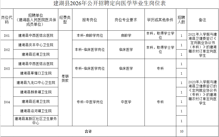 附件:建湖县2026年公开招聘定向医学毕业生岗位表